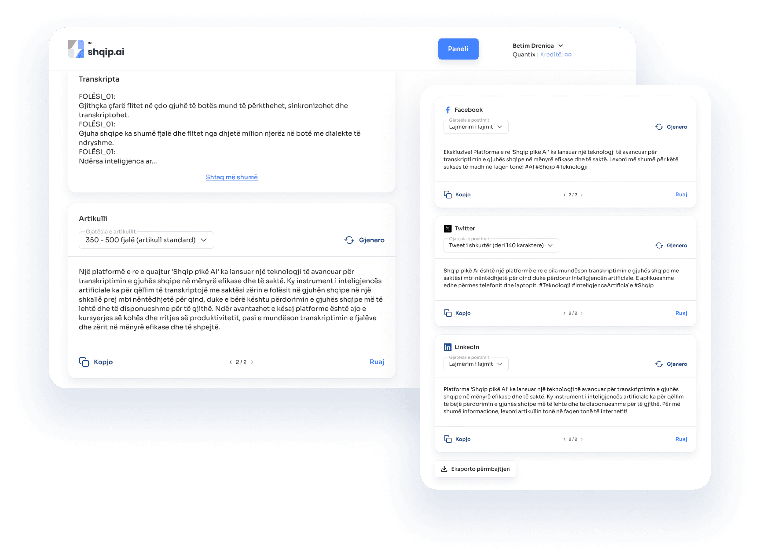 "Për momentin Shqip.ai është platforma më e mirë për AI transkriptim në Kosovë dhe Shqipëri."